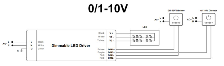 | Dimdraden | Bruin (DIM1+) Paars (DIM2+) Roze (DIM1-) Roze (DIM2-) 4*18AWG |